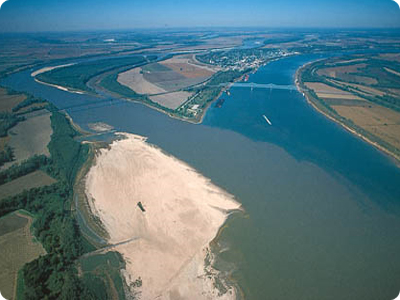 Mississippi River, Missouri of USA Empties into Gulf of Mexico. The Mississippi River is the largest river system in North America. About 2,320 miles (3,730 km) long. The Missouri River is a major river of central North America, and is a tributary of the Mississippi River.